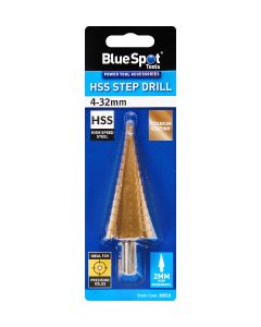 This 4-32mm step drill is specially designed for precision drilling of holes in aluminium, brass, copper, plastic, steel and wood. Manufactured from high speed steel for increased durability and cutting power. Titanium coated to reduce friction and heat. 2mm step increments.